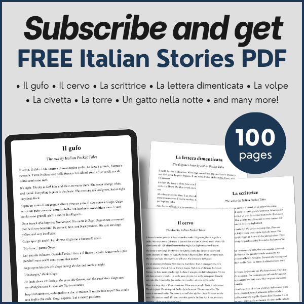 Every week, I create a bite-sized Italian lesson based on storytelling. By combining listening and reading, you will naturally absorb Italian grammar, pick up everyday vocabulary, and improve your comprehensionâall while enjoying a great story!