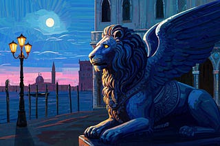 The stone lion's wish: a soothing journey through misty Venetian squares (B1).